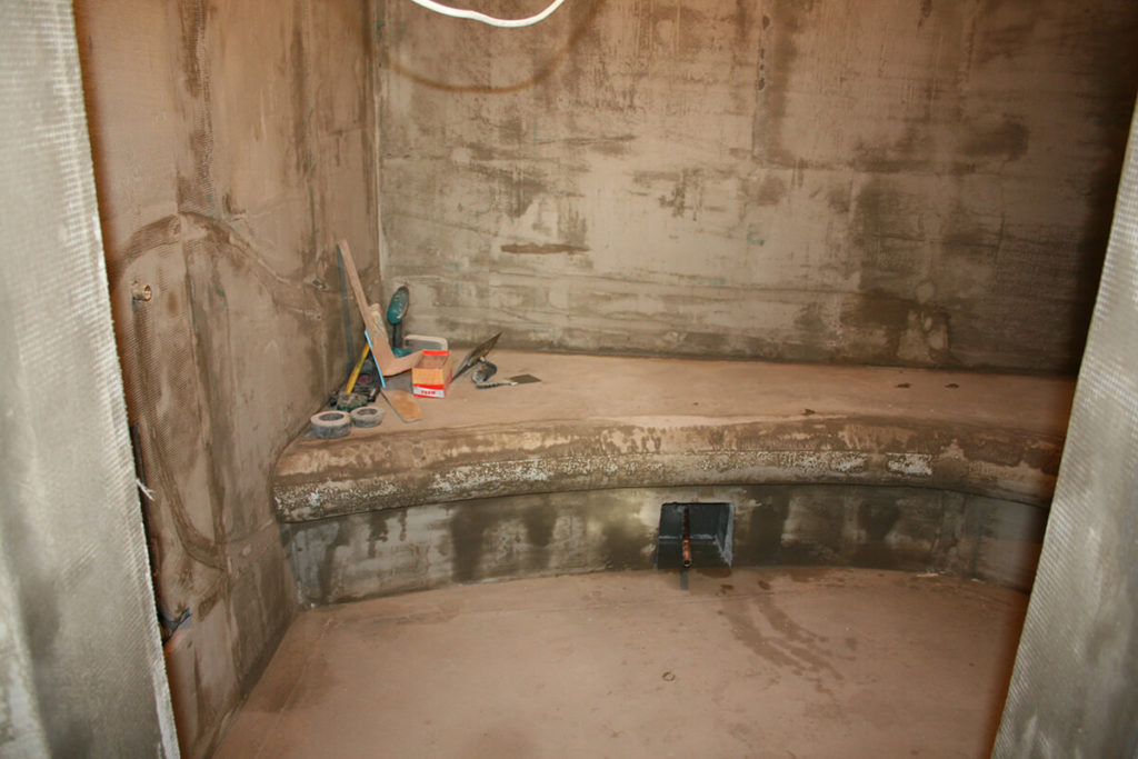 Обшиваем утеплителем будущую сауну или баню. Кладем плитку и гидроизоляцию. Устанавливаем обогреватель и проводку. Для хамамма делаем независимый пенополистироловый каркас. Создаем купол и лавки. Оборудуем отдельное техническое помещение и подогрев.